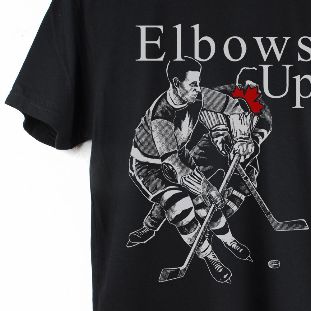 Depuis l'appel à l'action de Mike Myer pour les Canadiens sur SNL, nous avons reçu tellement de demandes pour un design « Elbows Up » que nous avons ressenti le besoin de nous lancer. Vive l'action collective et l'esprit d'unité et de communauté ! 🇨🇦