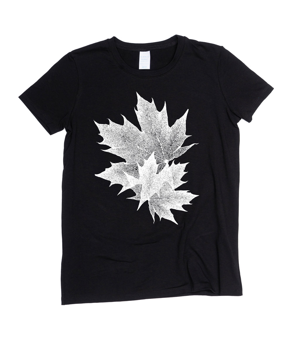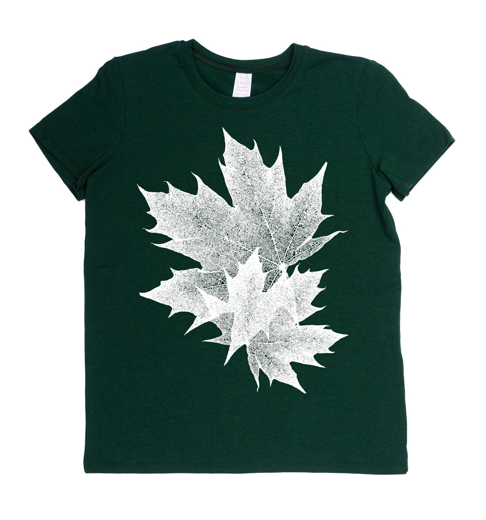 J'ai d'abord utilisé ces images d'érable sur mon art du verre , et je les ai tellement aimées que lorsque nous avons commencé à imprimer des t-shirts graphiques, nous avons décidé de les mettre également sur des chemises.