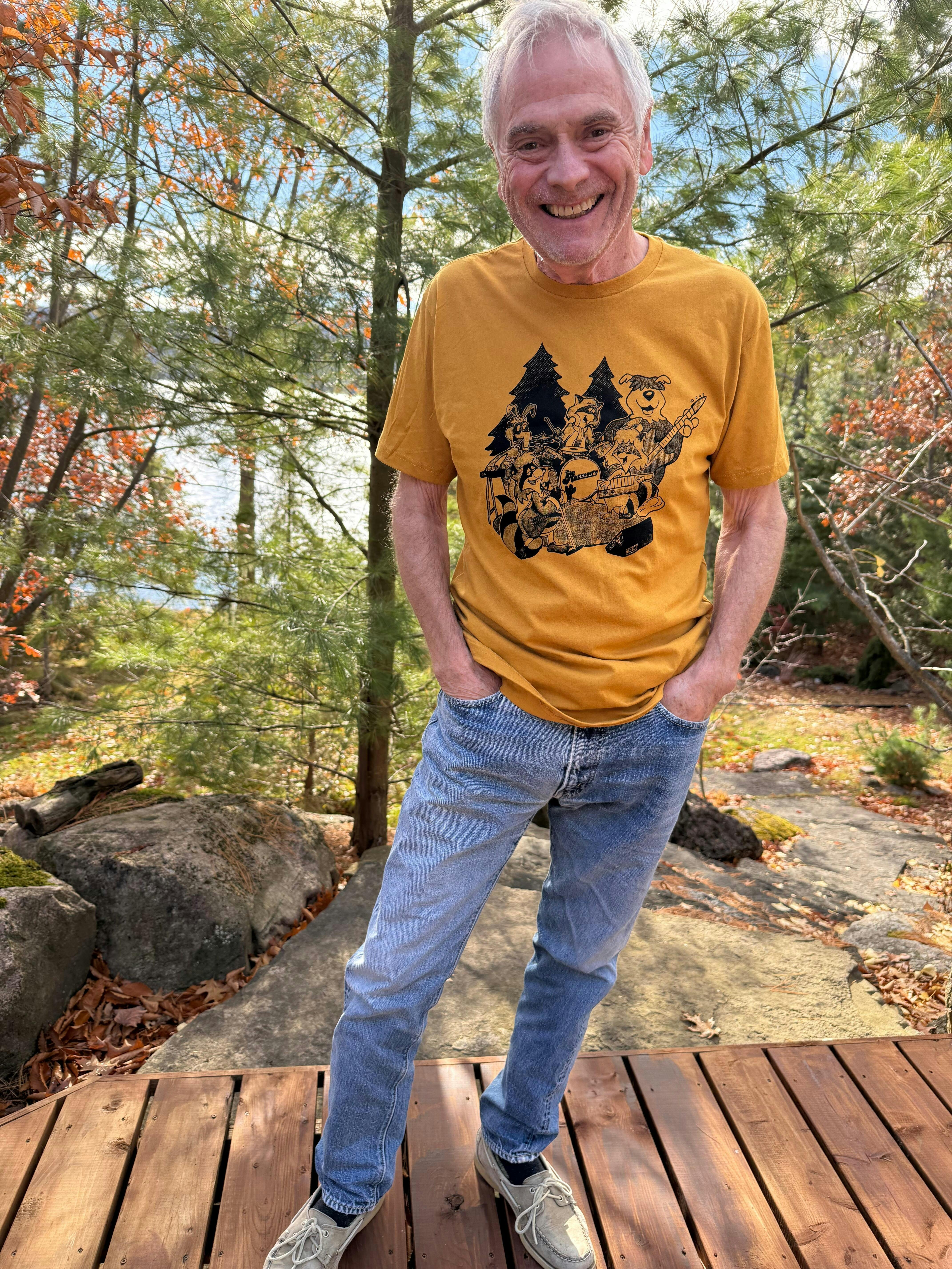The Raccoons band rocked the Evergreen Forest with hits like Run With Us and Taking My Time. This tee features the whole gang jamming out, with Bert on guitar and lead vocals, Ralph on drums, Melissa on keytar, Schaeffer on bass, and Cedric on keyboard.