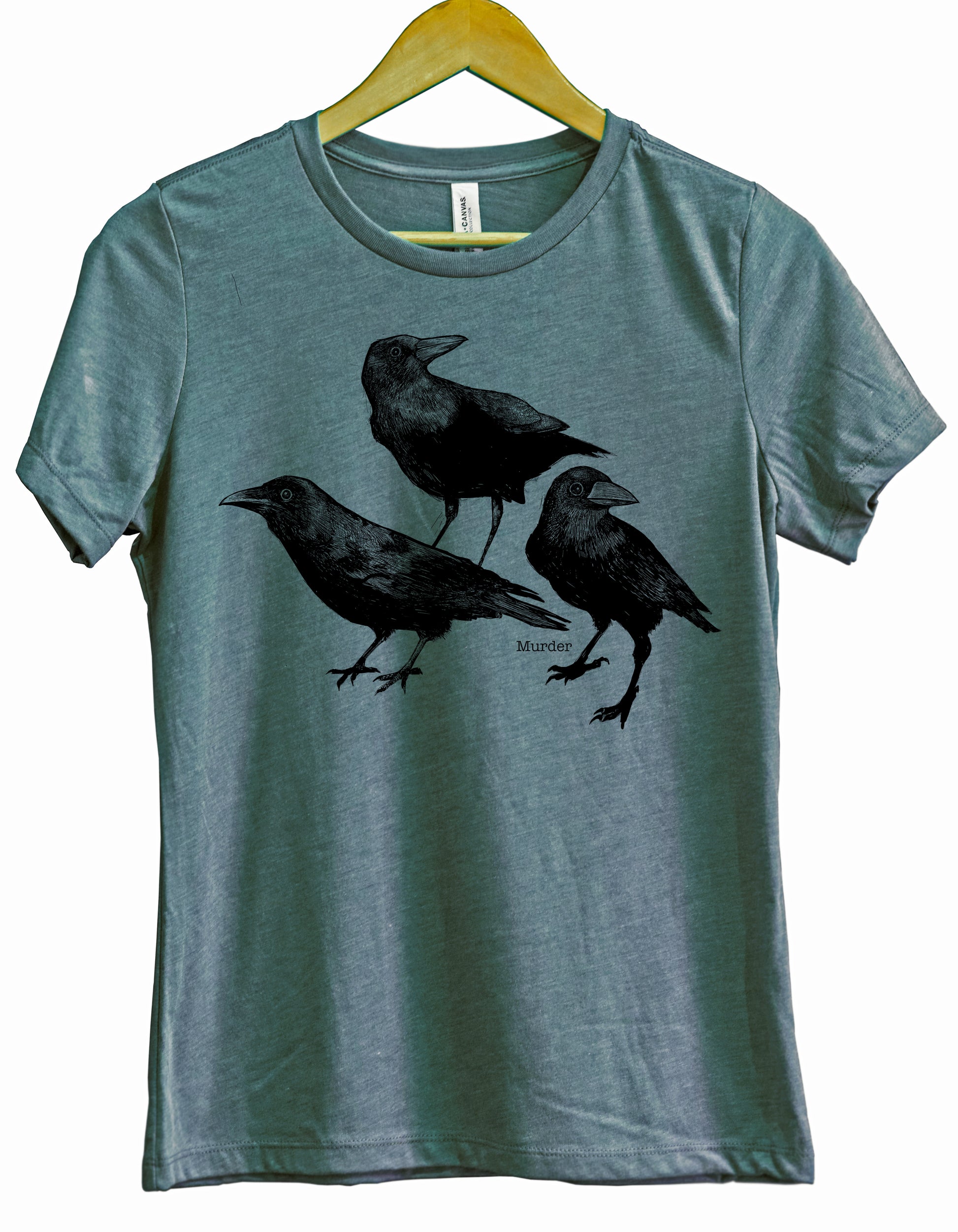 *We have two versions of this tee. One has the word "murder" to denote a group of crows ("Murder of Crows" option). The other does not ("Three Crows" option). Please select your preference in the options below.