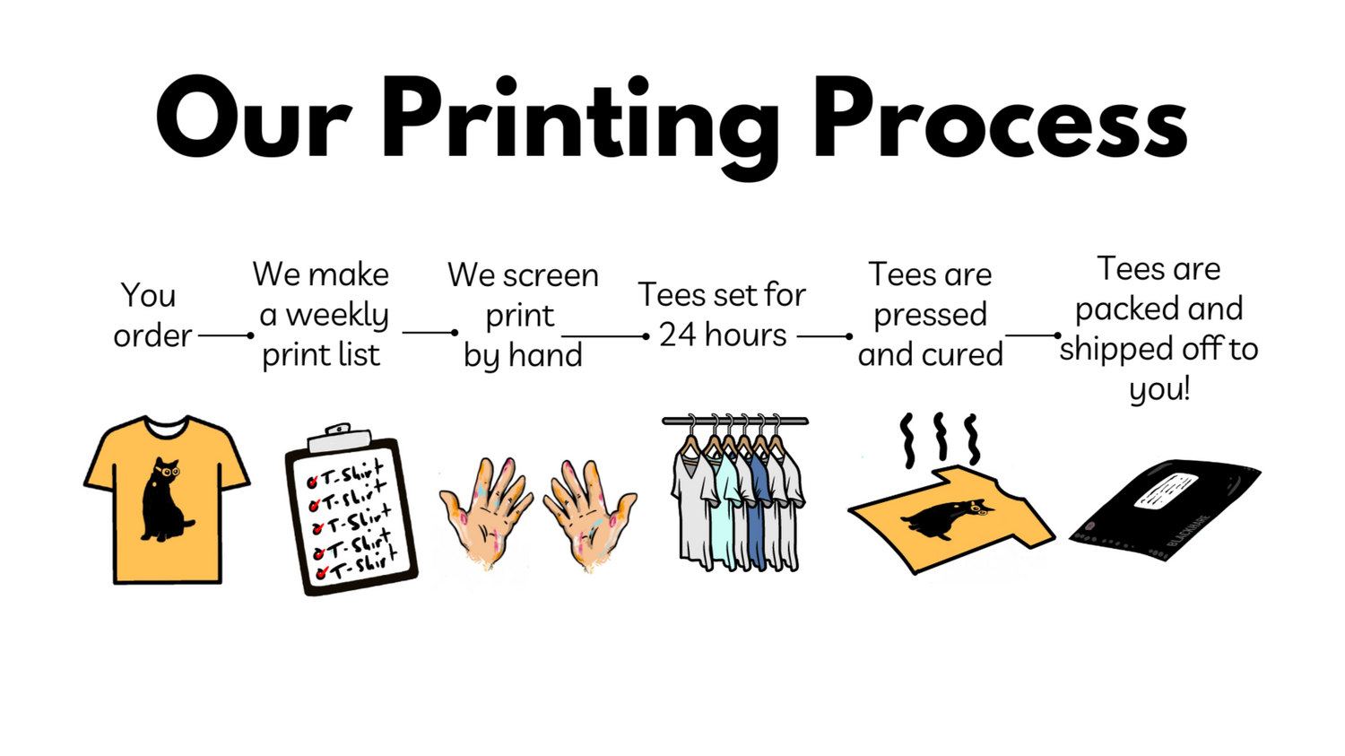 We are upgrading studios and are pausing production while we move. You can still make online orders, but we will not be making or shipping new tees as of September 11th until after we have set up in the new shop on October 6th!