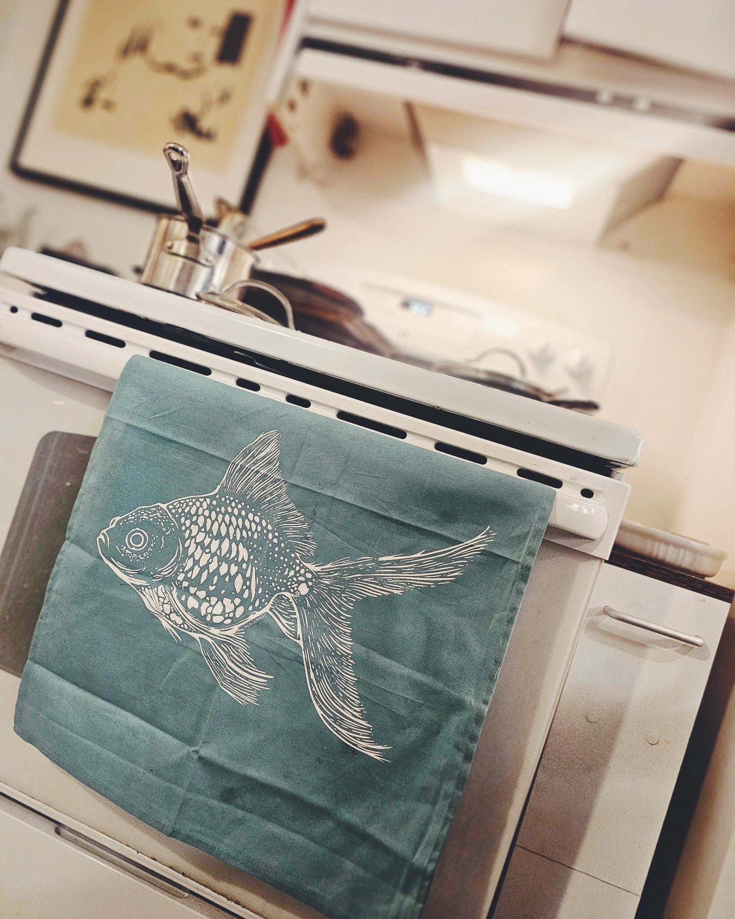 Made from a 100% plain-woven and undyed cotton. The towels have a 4-sided hem and hanger loop in the corner. Towel measures approximately 25.5 x 17.5”. All Blackhare tea towels are hand printed in our home studio in Sackville, New Brunswick using eco-friendly, water-based inks.