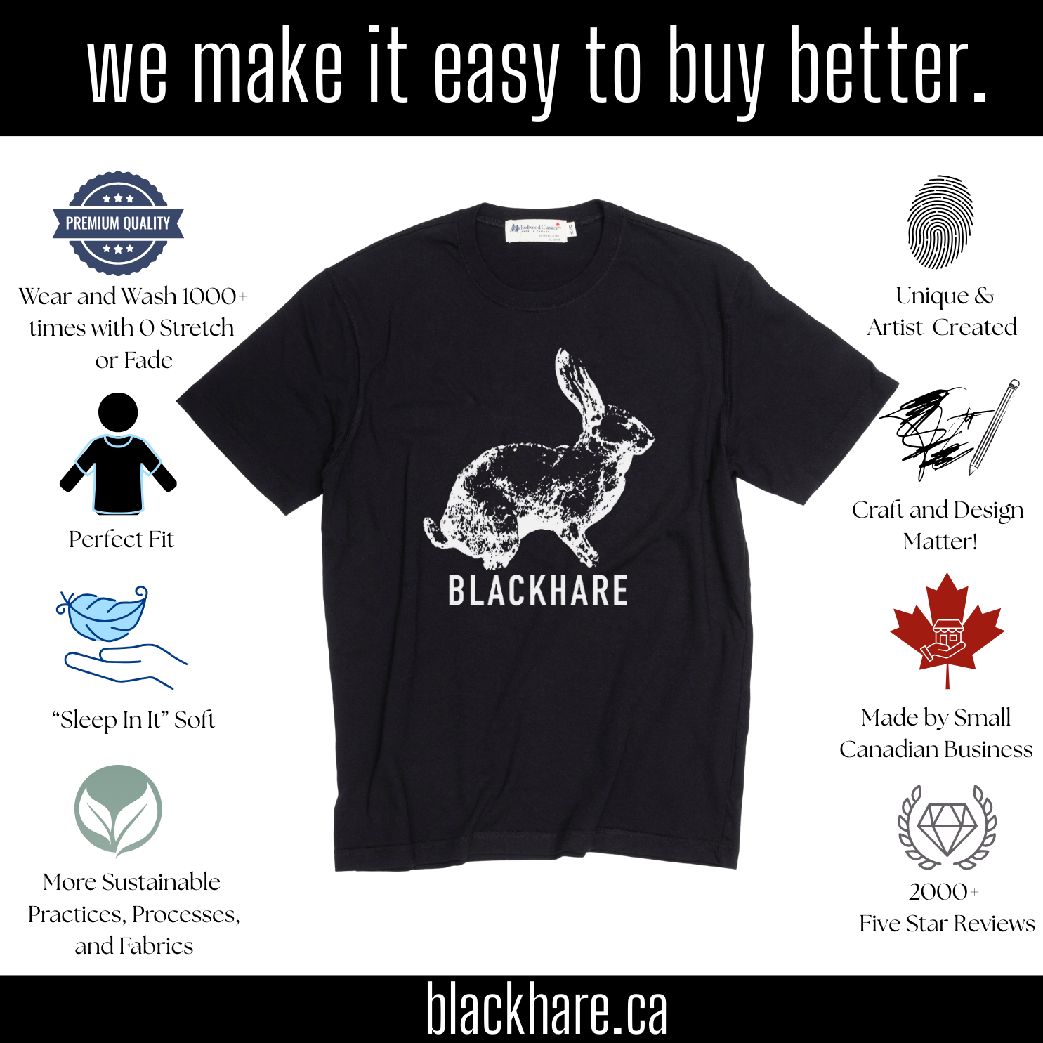 We have ordered a few times from Blackhare. Most for ourselves, a few for gifts. We’re never disappointed, and love how soft they are, and both the graphic and the softness stay wash after wash. Easily our favourite Ts.