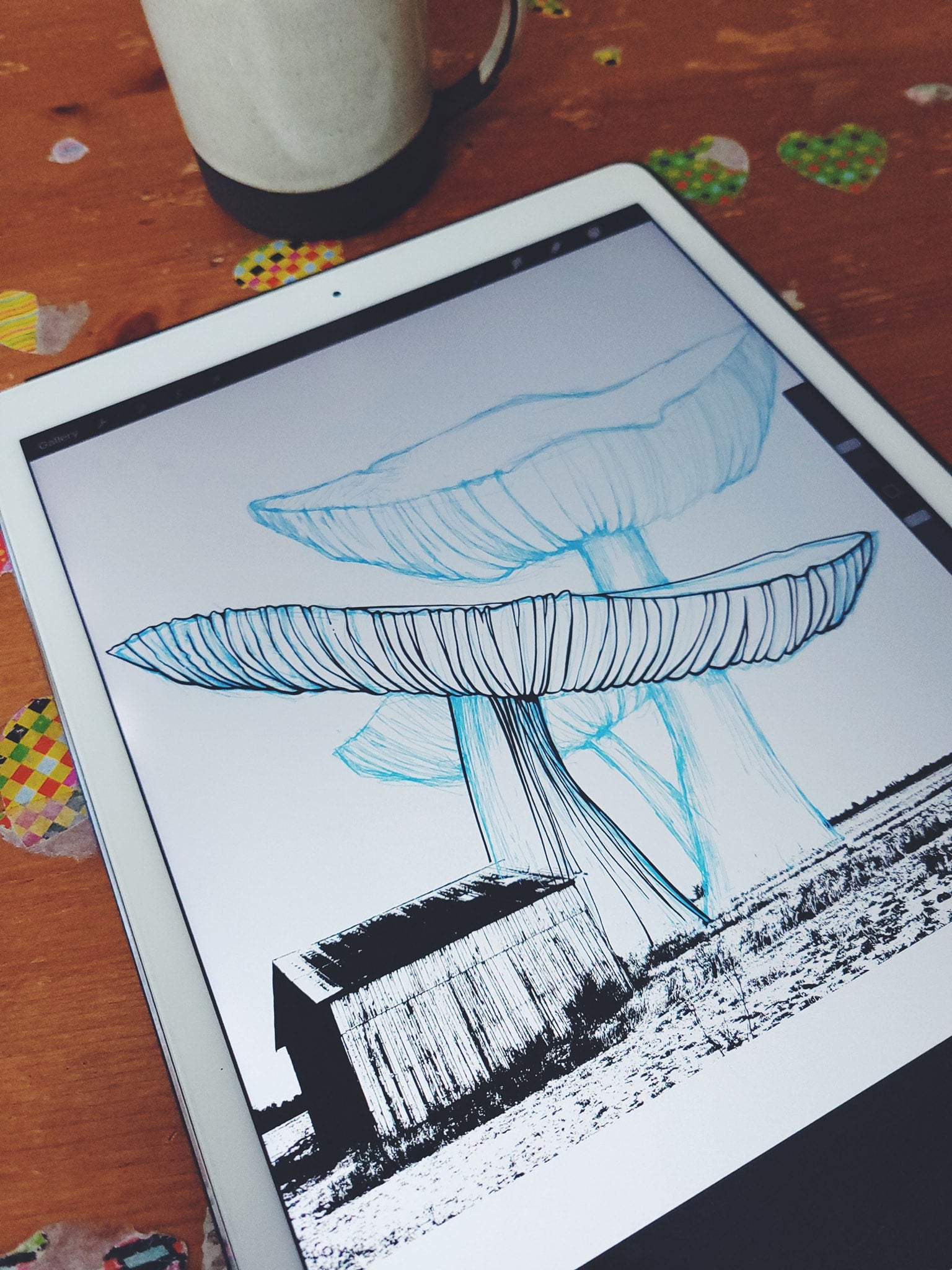 One of my favourite childhood memories was when I would go out to the marsh to pick mushrooms with my dad. His favourite kind to forage were field mushrooms (or meadow mushrooms), which popped up all over the marshlands in our hometown of Sackville, New Brunswick. With slender stems and wide, flat caps, we'd fill a pail of them and then bring them home, and my dad would cook them in milk and butter on a cast iron pan. This design is an homage to those little treasure hunts on the marsh.
