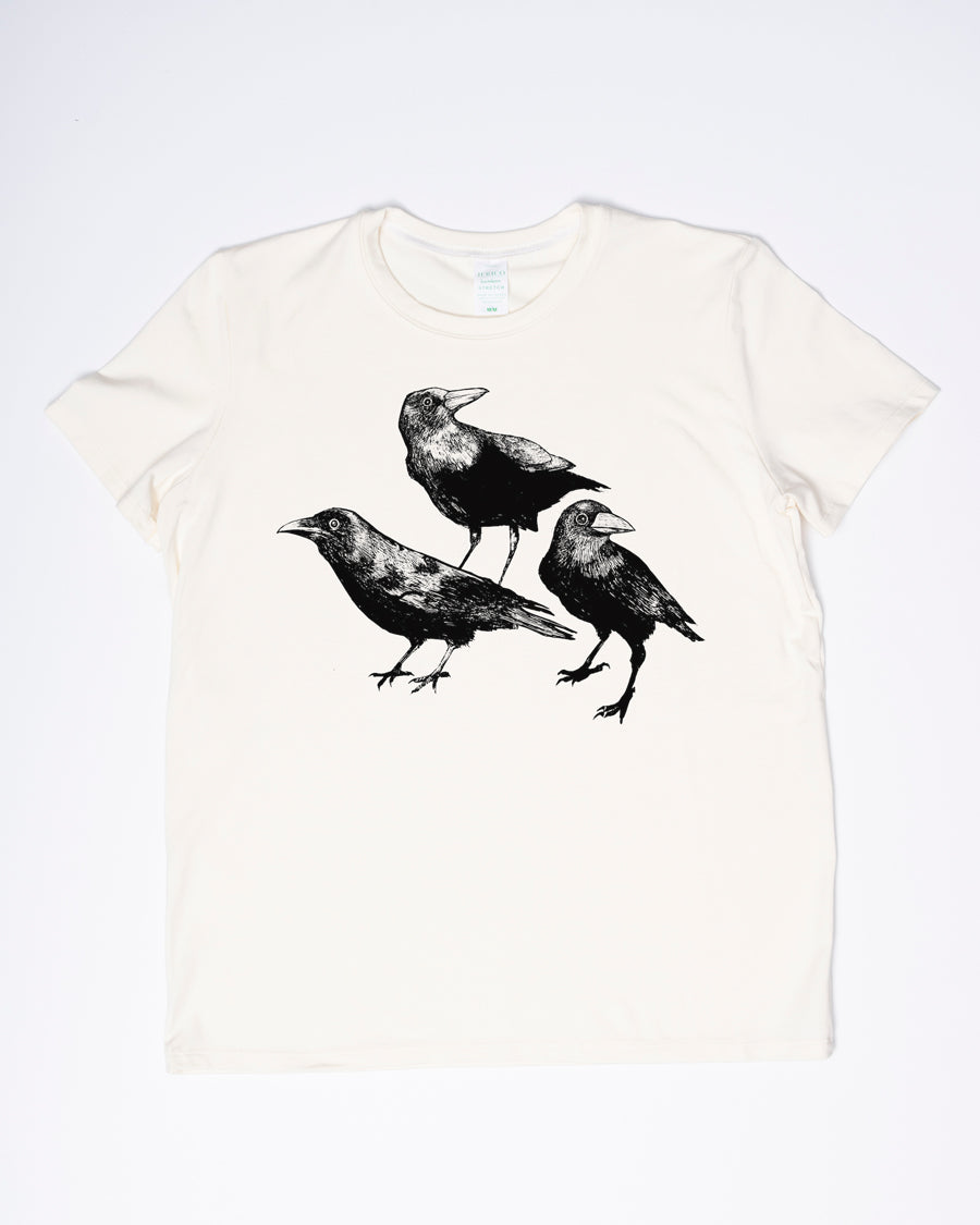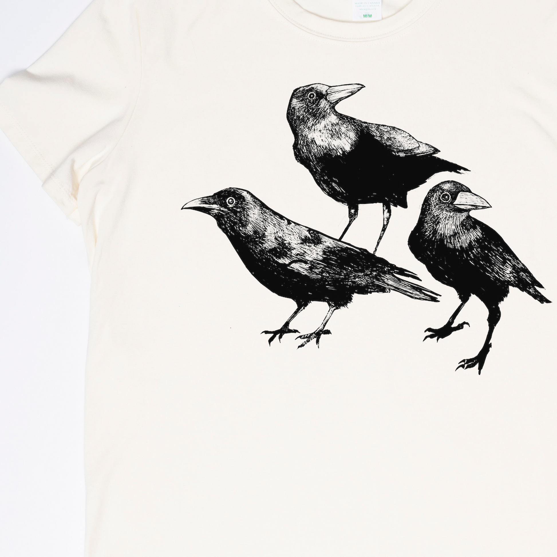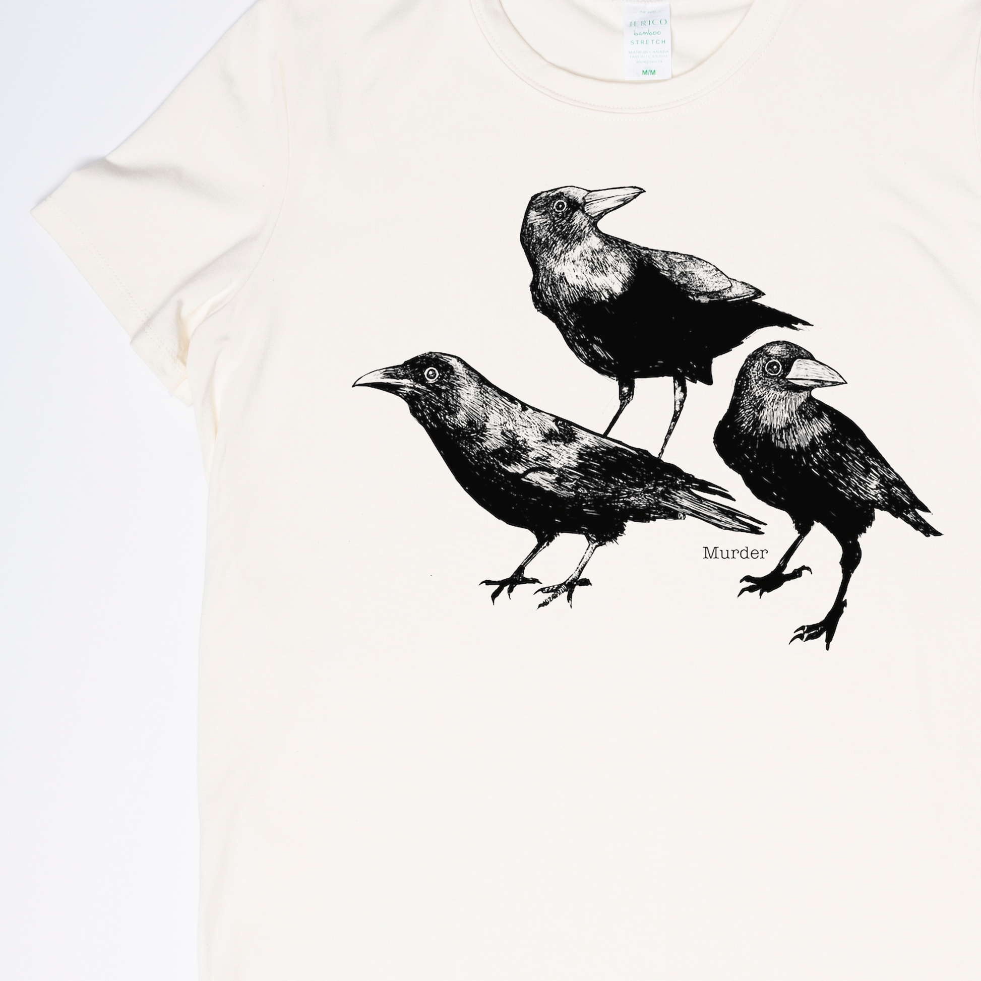 *We have two versions of this tee. One has the word "murder" to denote a group of crows ("Murder of Crows" option). The other does not ("Three Crows" option). Please select your preference in the options below.